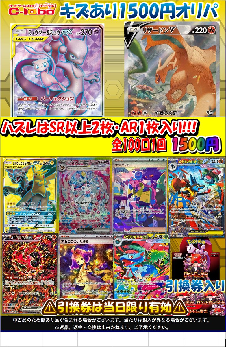 【ポケモンカード 販売情報】 ポケカ3000円オリパ新しく展開いたしました ブラッキーex SAR🌟ヒロシマのピカチュウ🌟ミュウツーGX SR などなど ラストワンもご用意しております 是非皆様のご来店お待ちしております♪
