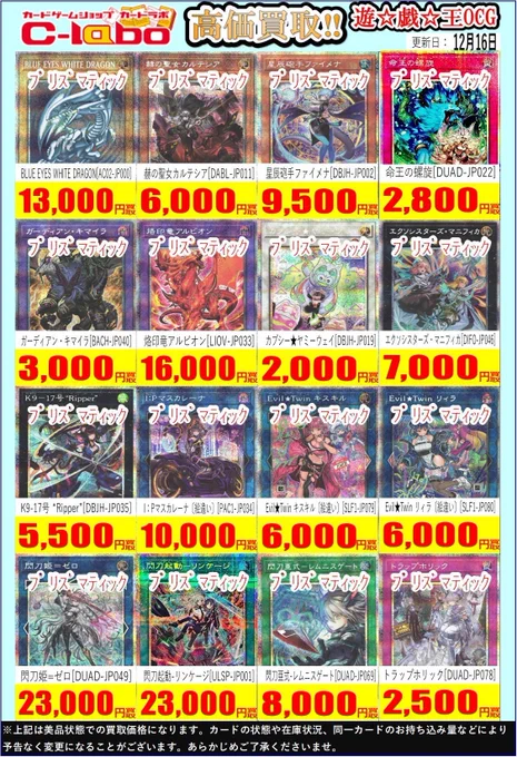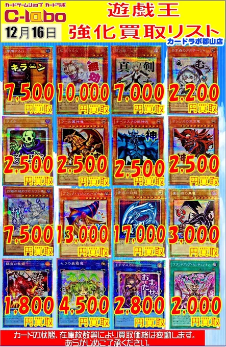 【遊戯王OCG 買取情報】 高レアの買取表になります 是非お持ち込みお待ちしております❣❣