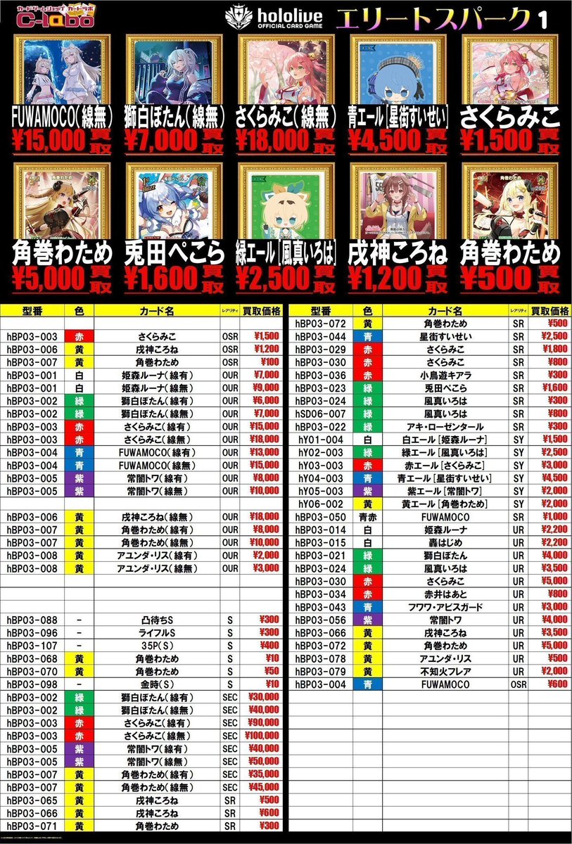 【ホロカ 買取情報】 白エール(兎田ぺこら&響咲リオナ)P¥2,500 緑エール(星街すいせい&風真いろは)P¥4,000 赤エール(一伊那尓栖&一条莉々華)P¥2,000 などなど 是非お持ち込みお待ちしております❣❣