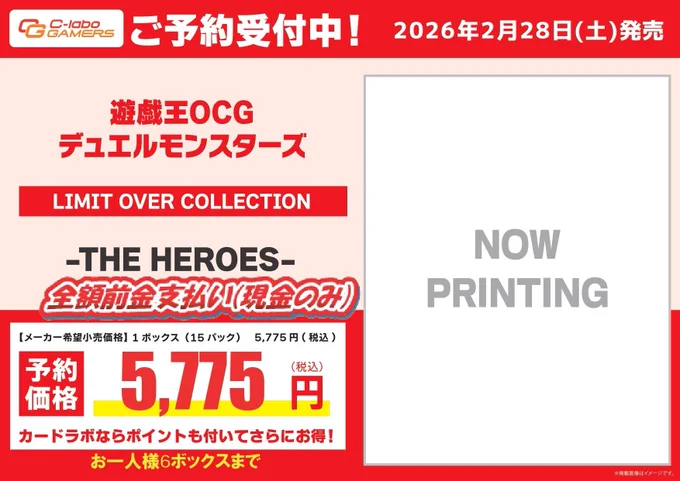 【✨予約情報✨】 遊戯王OCG 🔥LIMIT OVER COLLECTION -THE HEROES- 🔥LIMIT OVER COLLECTION -THE RIVALS- それぞれご予約開始いたしました ※お一人様6BOXまで ※全額現金にて前払い 注意事項をご確認の上ご来店ください