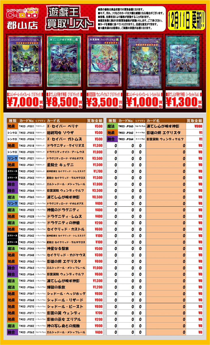 【遊戯王 買取情報】 TERMINAL WORLD 3 買取表になります 是非お持ち込みお待ちしております!!