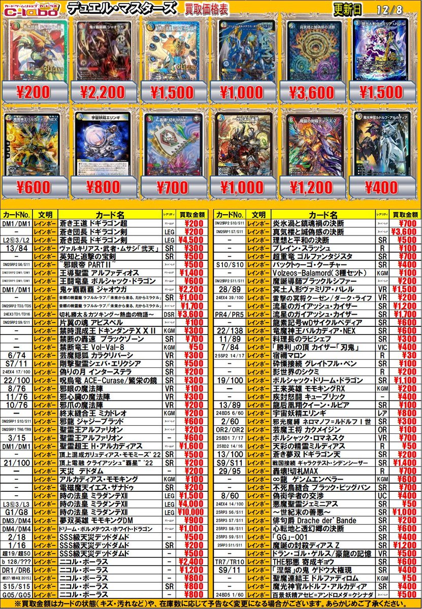 【デュエマ 買取情報】 「涅槃」の鬼 ゲドウ大権現SR¥400 聖魔連結王 ドルファディロムKGM¥50 魔光神官ルドルフ・アルカディアSR¥400 などなど各文明の汎用系や神アートなどお持ち込み募集中です 是非ご来店お待ちしております❣❣