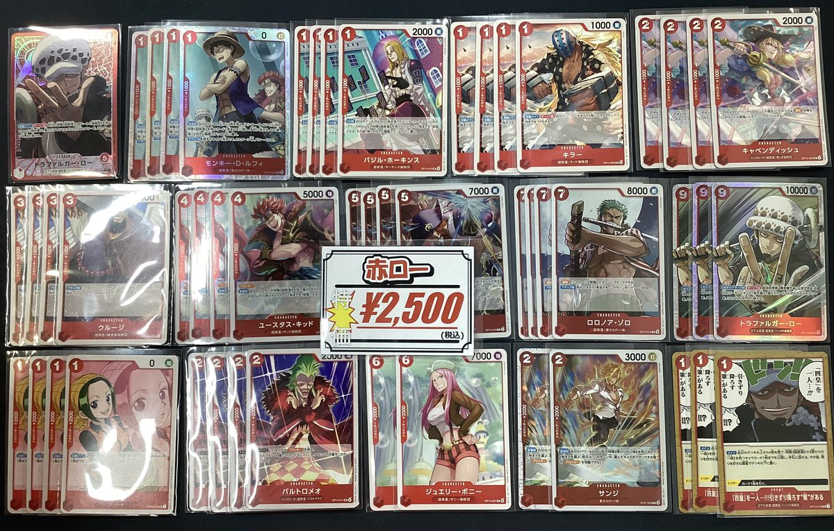 【ワンピースカード 販売情報】 赤ローデッキショーケースに展開いたしました♪ リーダーパラレル込みの 🔥大特価¥2,500🔥になります‼️ ぜひお買い求めください😊