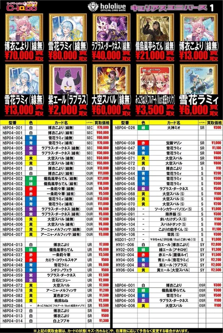 【ホロカ 買取情報】 白エール(兎田ぺこら&響咲リオナ)P ¥2,500 緑エール(星街すいせい&風真いろは)P ¥4,000 赤エール(一伊那尓栖&一条莉々華)P ¥2,000 ホロカ是非当店までお持ち込みください😊 お買取りお待ちしております🙌