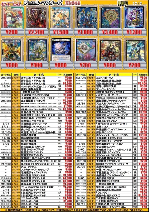 【デュエマ 買取情報】 偽りの希望 鬼丸「終斗」 SR ¥2,200 S級原始 サンマックス SR ¥300 S級原始 サンマッド SR ¥500 鬼ヶ覇覇覇 ジャオウガ ドリームレア ¥2,200 神アートや汎用系もお買取募集中です🙌 是非お持ち込みお待ちしております❣