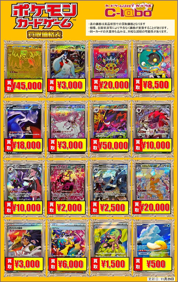 【ポケカ 買取情報】 買取表更新しました メガカイリューex 250/193 45,000円買取 メガカイリューex 246/193 20,000円買取 メガゲンガーex 240/193 50,000円買取 ご来店お待ちしております 在庫状況や状態で金額が変動する場合がございます あらかじめご了承ください