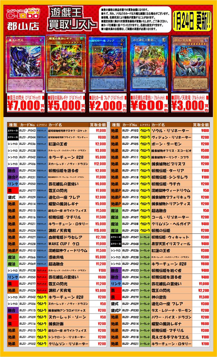 【遊戯王OCG 買取情報】 遊戯王最新弾 BLAZING DOMINION 買取表更新致しました🔥 是非お持ち込みお待ちしております❣❣ ※商品の状態や在庫状況により減額となる場合がございますのであらかじめご了承ください