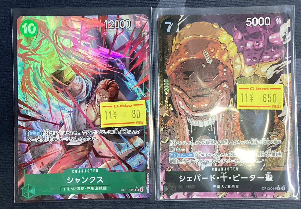 【ワンピースカード 販売情報】 🍵シェパード・十・ピーター聖🍵 🗡️シャンクス🗡️ 特価でショーケースに展開いたしました🉐 ご来店お待ちしております‼️
