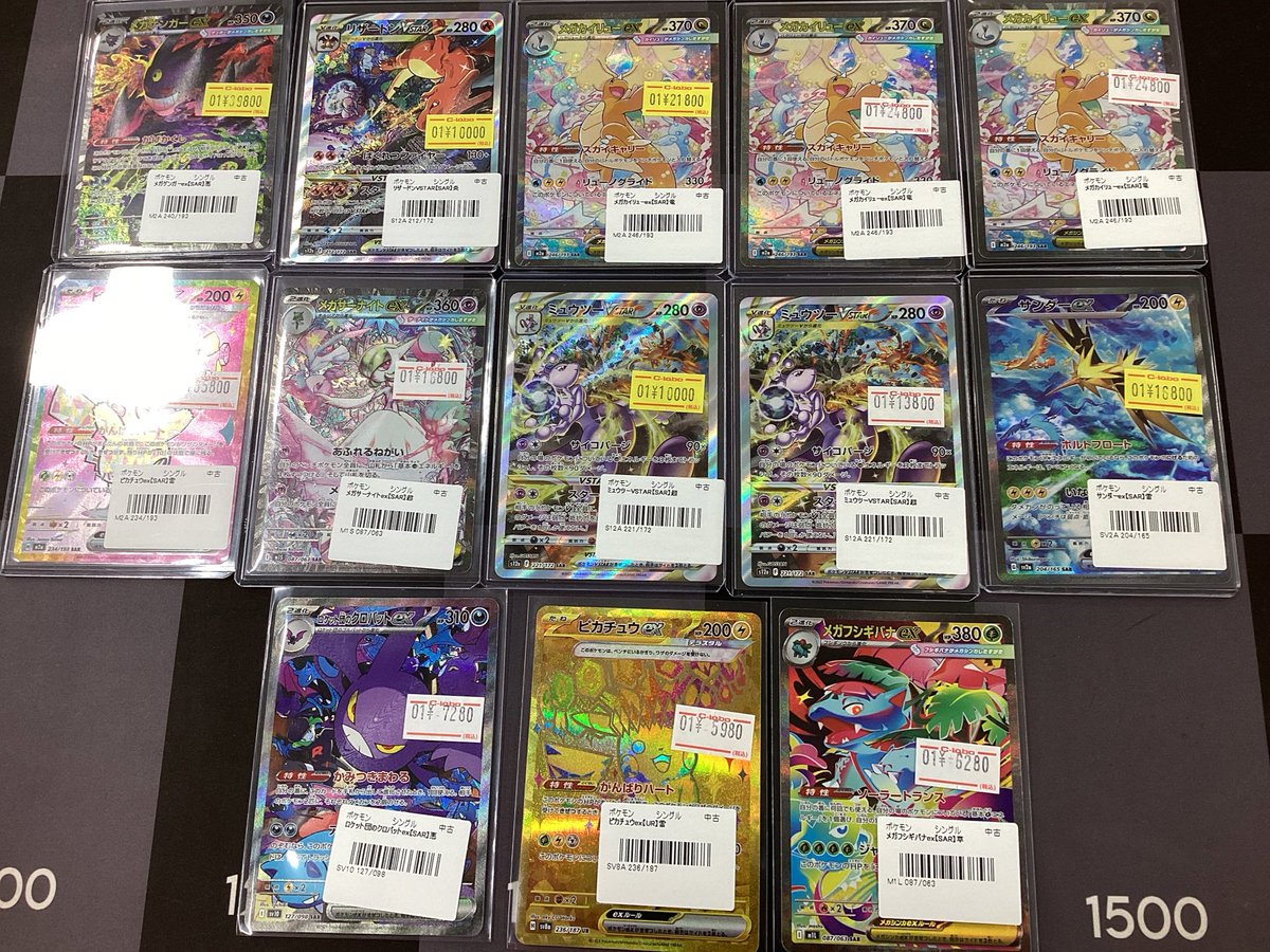 【ポケモンカード 販売情報】 お持ち込み頂きありがとうございます こちらお買取させて頂きました🔥🔥 🪽メガカイリューex SAR 👻メガゲンガーex SAR ⚡️ピカチュウex SAR 🔮ミュウツーvstar SAR などなど‼️ 状態確認だけでも可能ですので 是非カードラボ郡山店までお越し下さい🔥