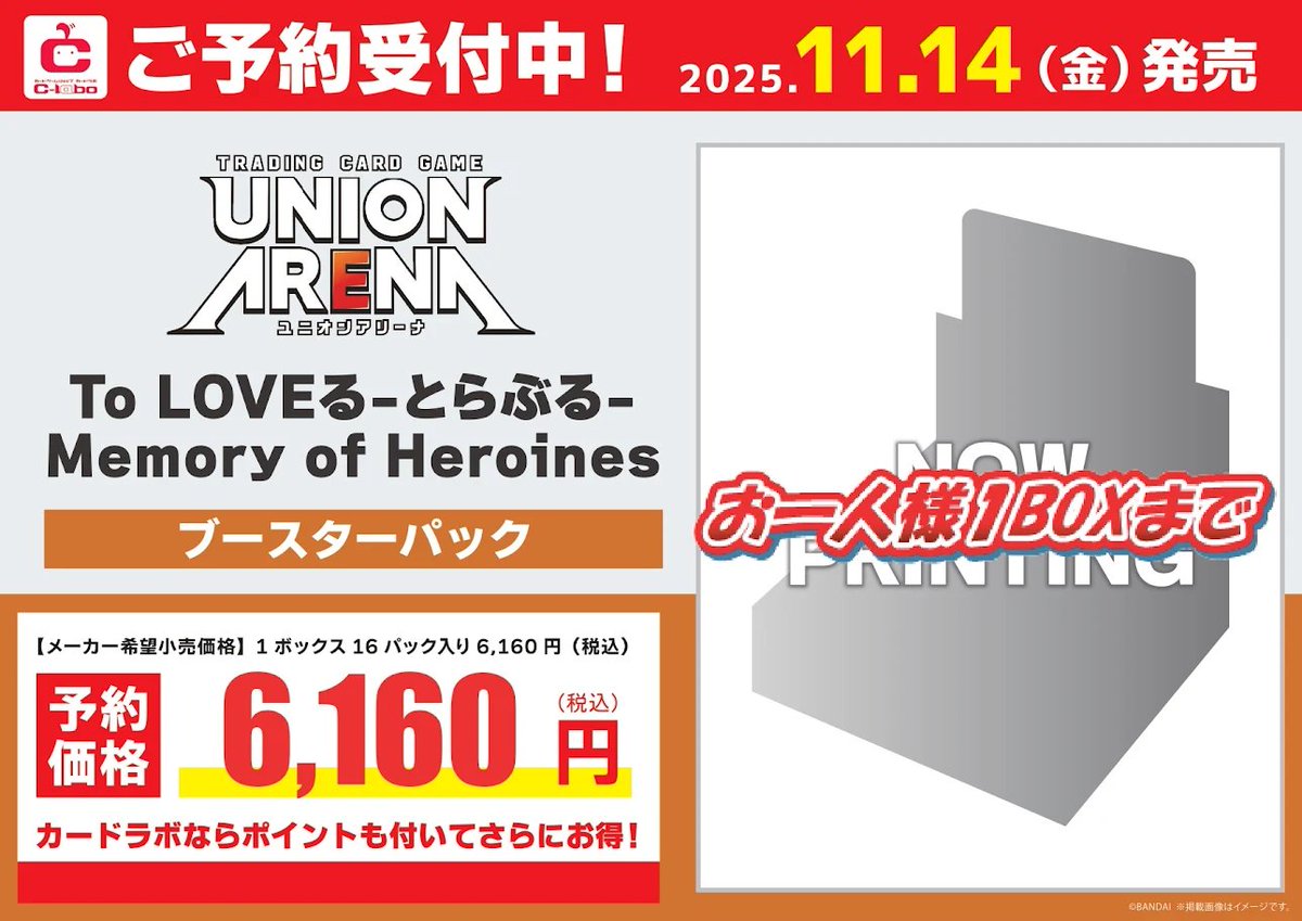 【ユニアリ 予約情報】 11/14(金) ブースターパック 『To LOVEる-とらぶる-Memory of Heroines』 予約開始いたしました‼️ ※お一人様1BOXまでのご予約となります。 お求めの際はカードラボ郡山店まで! 皆様のご利用お待ちしております!