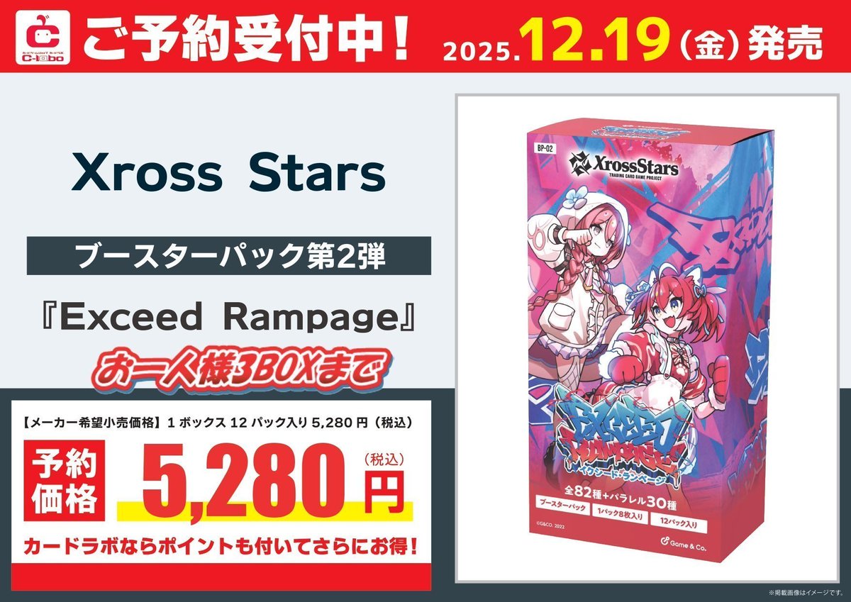 【#クロススターズ 予約情報】 12月19日(金)発売 ブースターパック第2弾 ❣️『Exceed Rampage』❣️ ご予約開始致しました 是非ご来店お待ちしております ⚠予約時に前金を現金で頂戴致します。