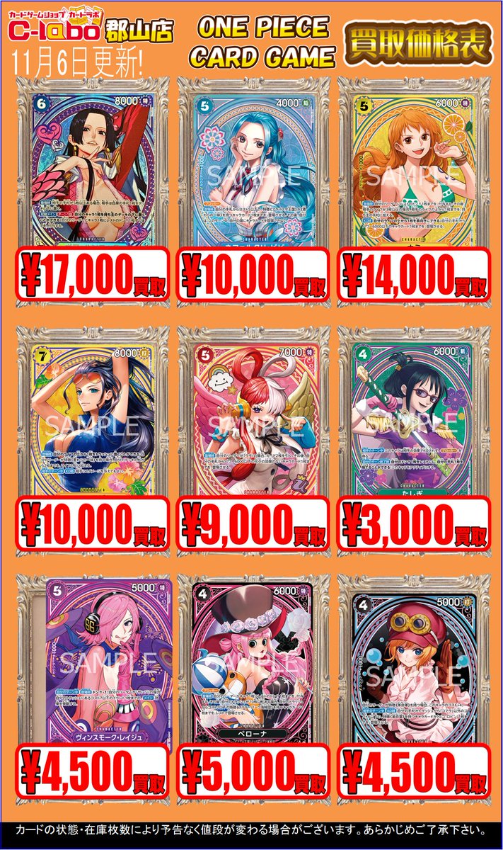 【ワンピースカード買取情報】 ワンピ新弾SP・汎用カードの買取表を更新しました! 在庫足りておりませんのでカードラボ郡山店まで ぜひお持ち込みお願いいたします🙇♂️🙇♂️ 明日も皆さまのご来店お待ちしております!!