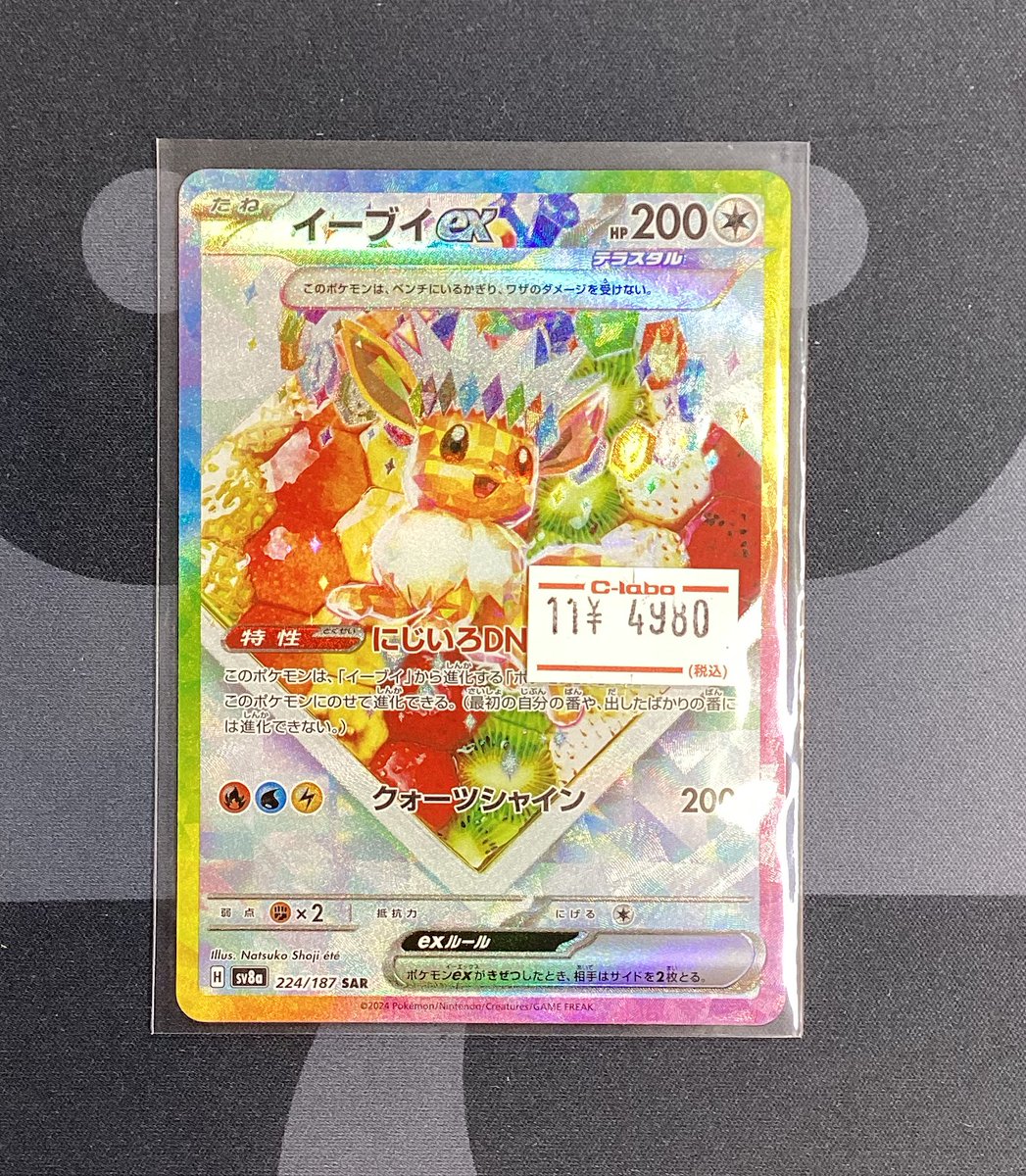 【ポケモンカード販売情報】 🎂イーブイex 224/187 SAR🎂 入荷しました🎀 スイーツ柄の可愛らしいデザインですよ🍰🍩 皆様のご来店お待ちしております🙇♂️