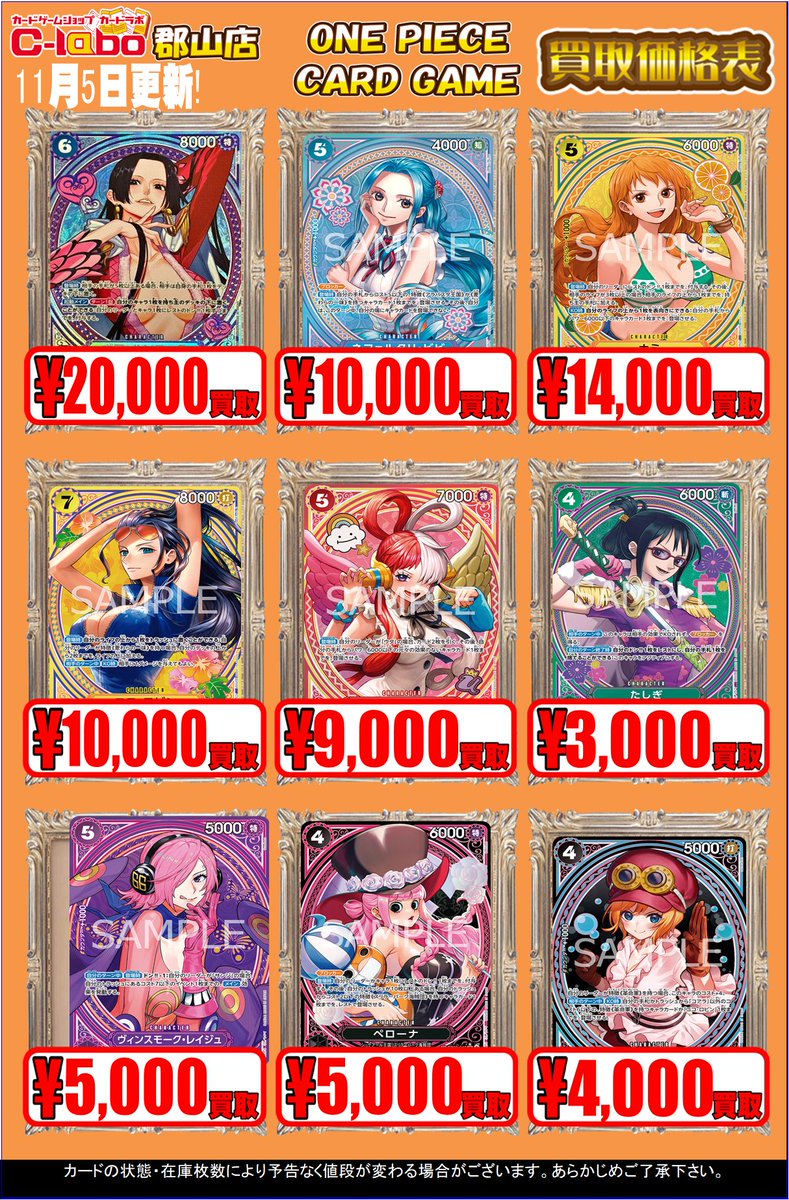 【ワンピースカード 買取情報】 ワンピ買取表の価格を更新いたしました‼ たくさんのお持ち込みお待ちしております😊