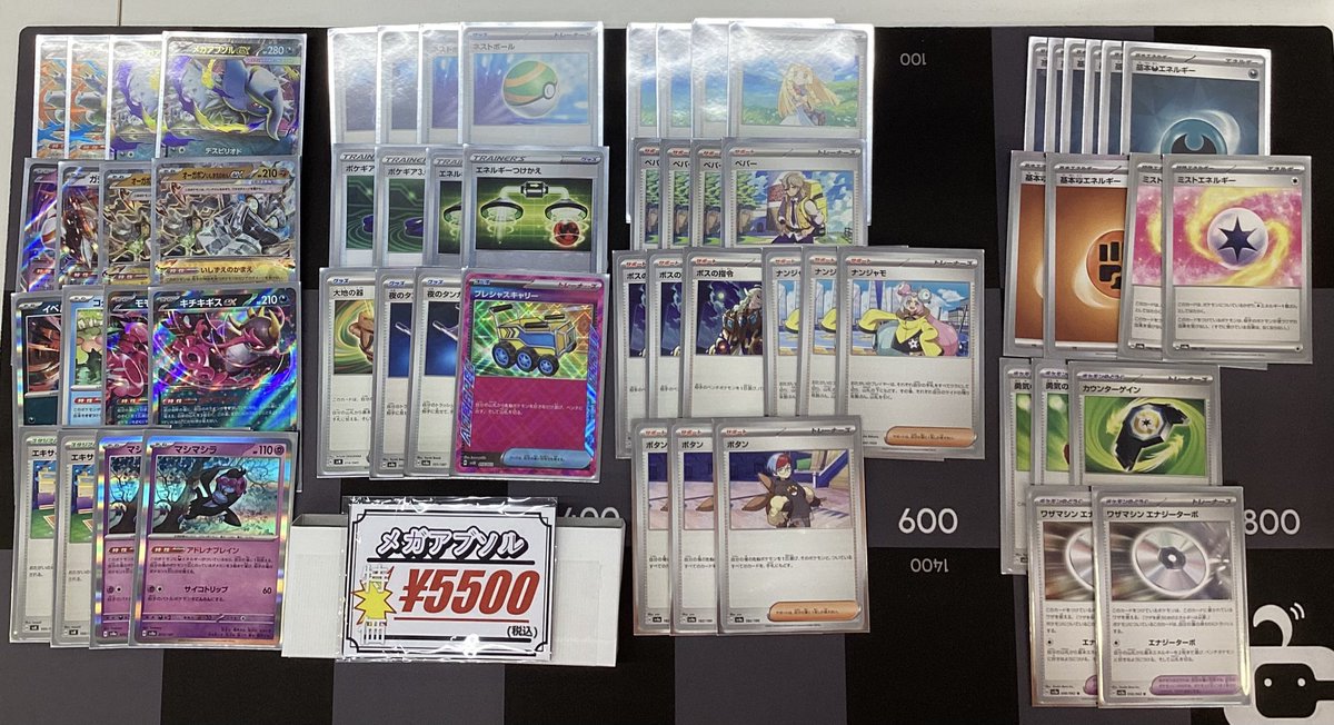 【ポケモンカード販売情報】 新入荷の✨️メガアブソルex✨️デッキの他にも 🔹バチュルサーフゴー 🔹ヒビキのバクフーン(ボム入) 🔹テツノイバラex&イワパレス がございます🌟🎶 スリーブ付き🤩で大変お🉐に デッキを試せるチャンスです❣️❣️❣️ 明日のご来店お待ちしております🌙🌃
