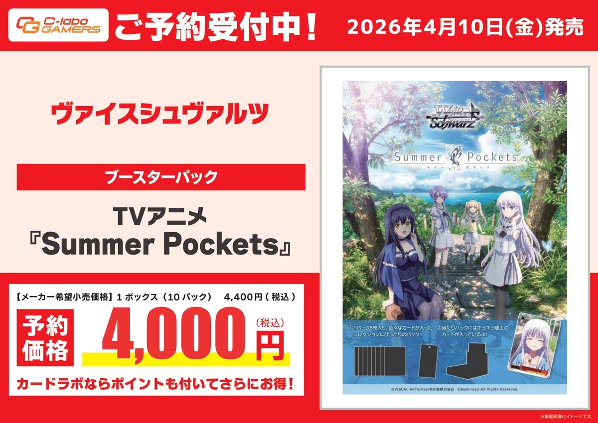 【ヴァイスシュヴァルツ 予約情報】 2026年4月10日(金)発売予定‼ ブースターパック 🌅TVアニメ『Summer Pockets』🌅 店頭にて予約受付開始致しました 是非カードラボ郡山店までお待ちしております❣❣