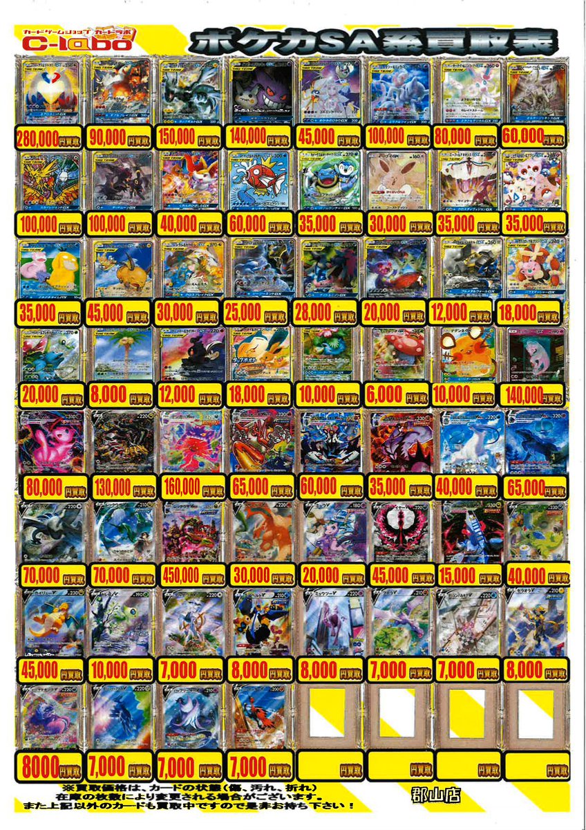 【ポケカ 買取情報】 SA系シングルお買取募集中です❣ 状態や在庫状況により金額が変動する場合がございます。予めご了承ください