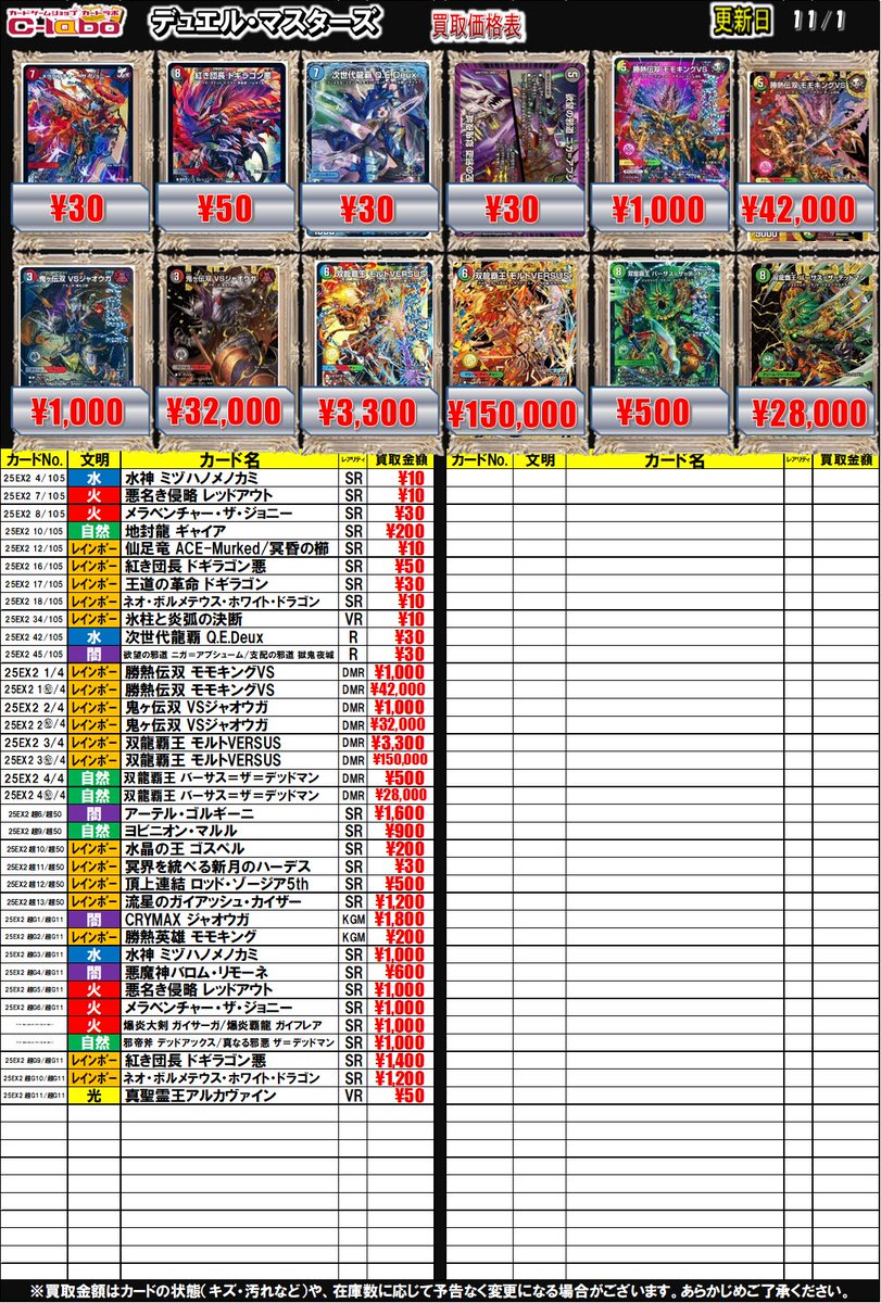 【デュエマ 買取情報】 勝熱伝双 モモキングVSDMR¥1,000 鬼ヶ伝双 VSジャオウガDMR¥1,000 双龍覇王 モルトVERSUSDMR¥3,300 轟壊!切札MAX R ¥700 などなどお買取募集中です ぜひご来店お待ちしております❣