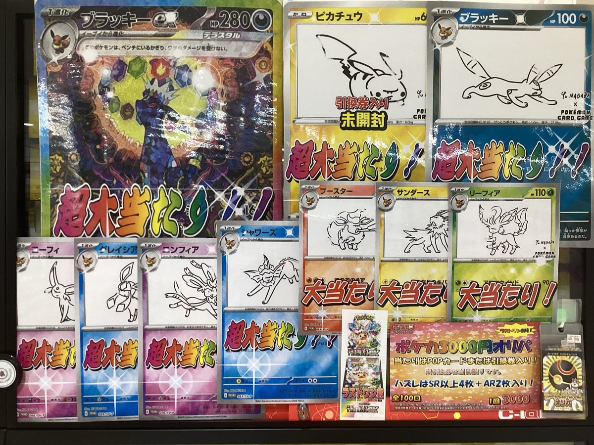 【ポケモンカード販売情報】 ブイズだらけ⁉️✨3000円オリパ✨ こちら販売中です( ꈍ◡ꈍ)🎀 残り4️⃣1️⃣口 超大当たりは🌙🔹ブラッキーex ✨SAR✨🔹🌙 ラストワンは💎💥テラスタルフェスex 1BOX💥💎 お求めはカードラボ郡山店までお越しくださいませ🍀
