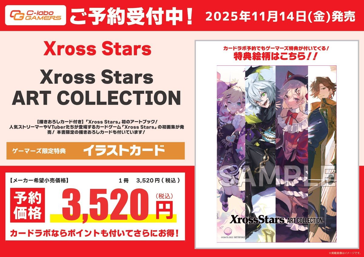 【#クロスタTCG】 11/14発売 『Xross Stars ART COLLECTION』 予約受付開始しました!! ゲーマーズ限定特典も付属となります✨ ※1冊につき前金500円を現金にて頂戴致します。