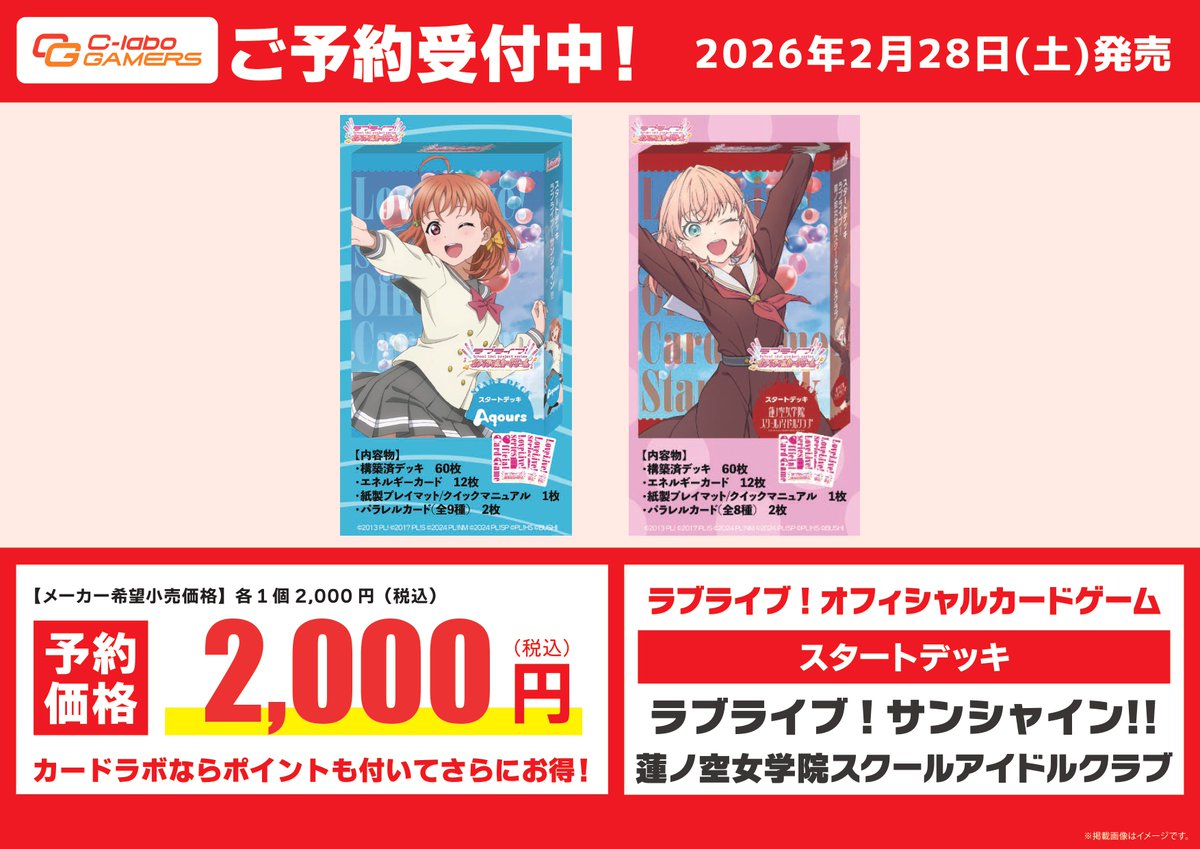 【ラブカ 予約情報】 2026年2月28日(土)発売予定 ❣️ブースターパック❣️ 『Anniversary 2026』 スタートデッキ 🎤『ラブライブ!サンシャイン!!』 🌸『蓮ノ空女学院スクールアイドルクラブ』 予約受付開始致しました!! ご来店お待ちしております❣
