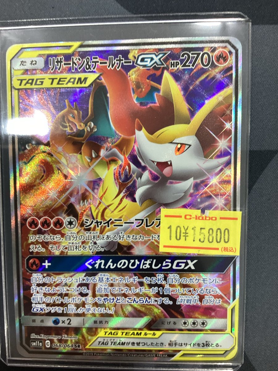 【ポケモンカード 販売情報】 リザードン&テールナーGX ショーケースに展開中です♪ 状態確認だけでも可能ですのでお気軽にお声掛けください