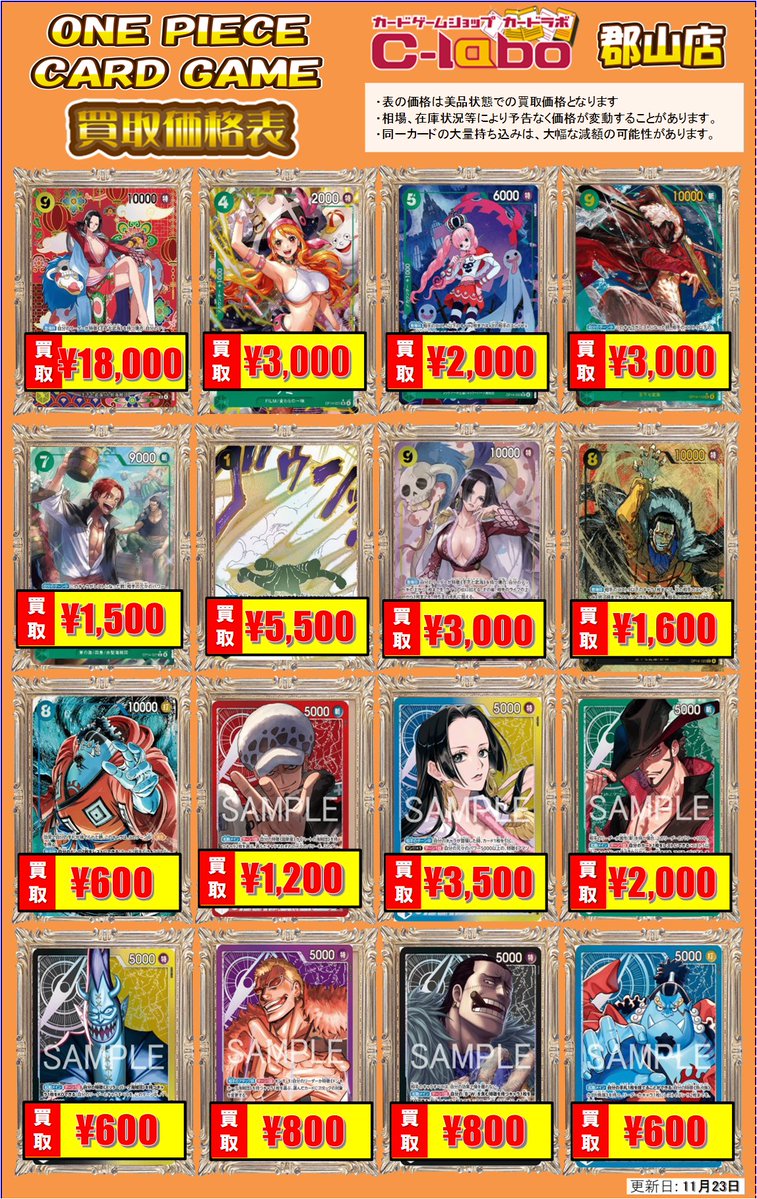 【ワンピースカード 買取情報】 ワンピ最新弾表更新いたしました♪ 在庫足りません(T_T) たくさんのお持ち込みお待ちしております‼️