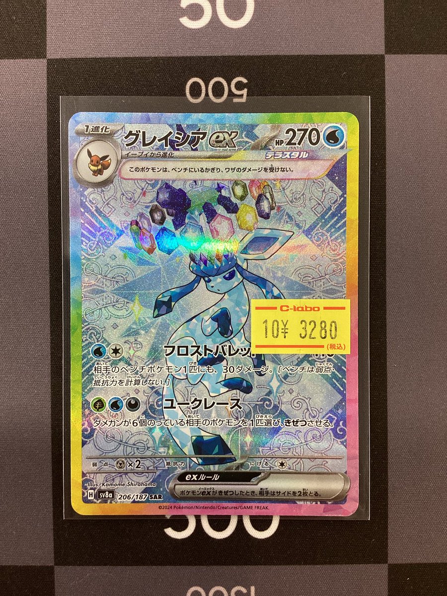 【ポケモンカード販売情報】 かわいいブイズの入荷です⸜(*˙꒳˙*)⸝🩵 ❄️グレイシアex SAR❄️ 特価での販売です💡´- 状態確認お気軽にお声掛けください♪̊̈♪̆̈