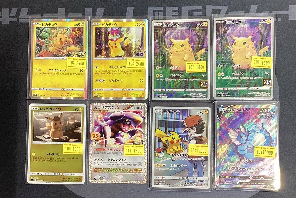 【ポケモンカード販売情報】 ピカチュウ大量入荷しました❣️ CHRやプロモピカチュウなどショーケースにいます😊 シャワーズVSRも入荷中です✨️ 是非当店までお越しくださいませ✨️✨️ お客様のご来店お待ちしております✨️✨️✨️
