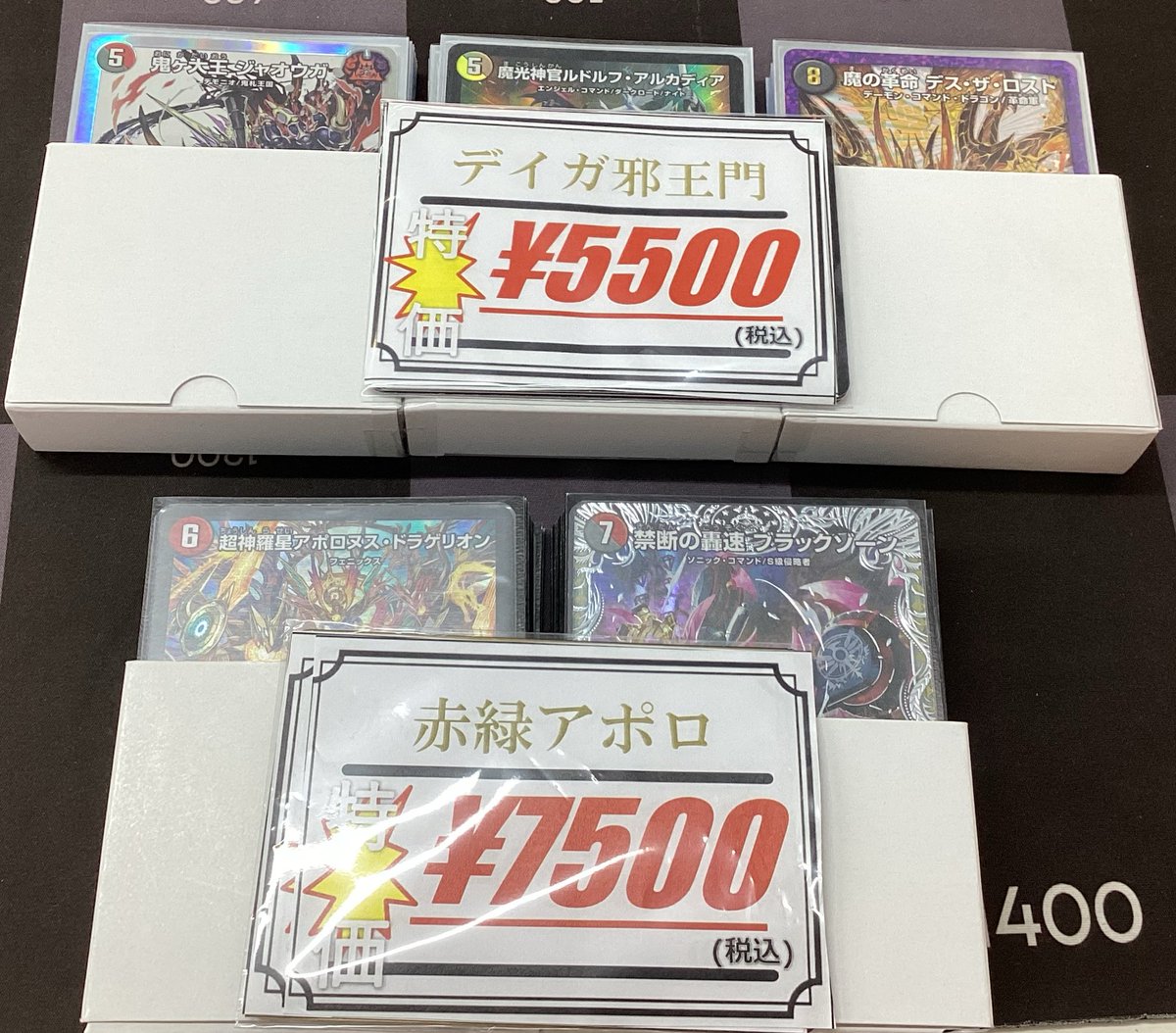 【デュエマ 販売情報】 デッキ入荷いたしました‼️ ・赤緑アポロ ・デイガ邪王門 を展開しました✨️ 内容確認だけでも可能ですのでお気軽にお声掛けください♪