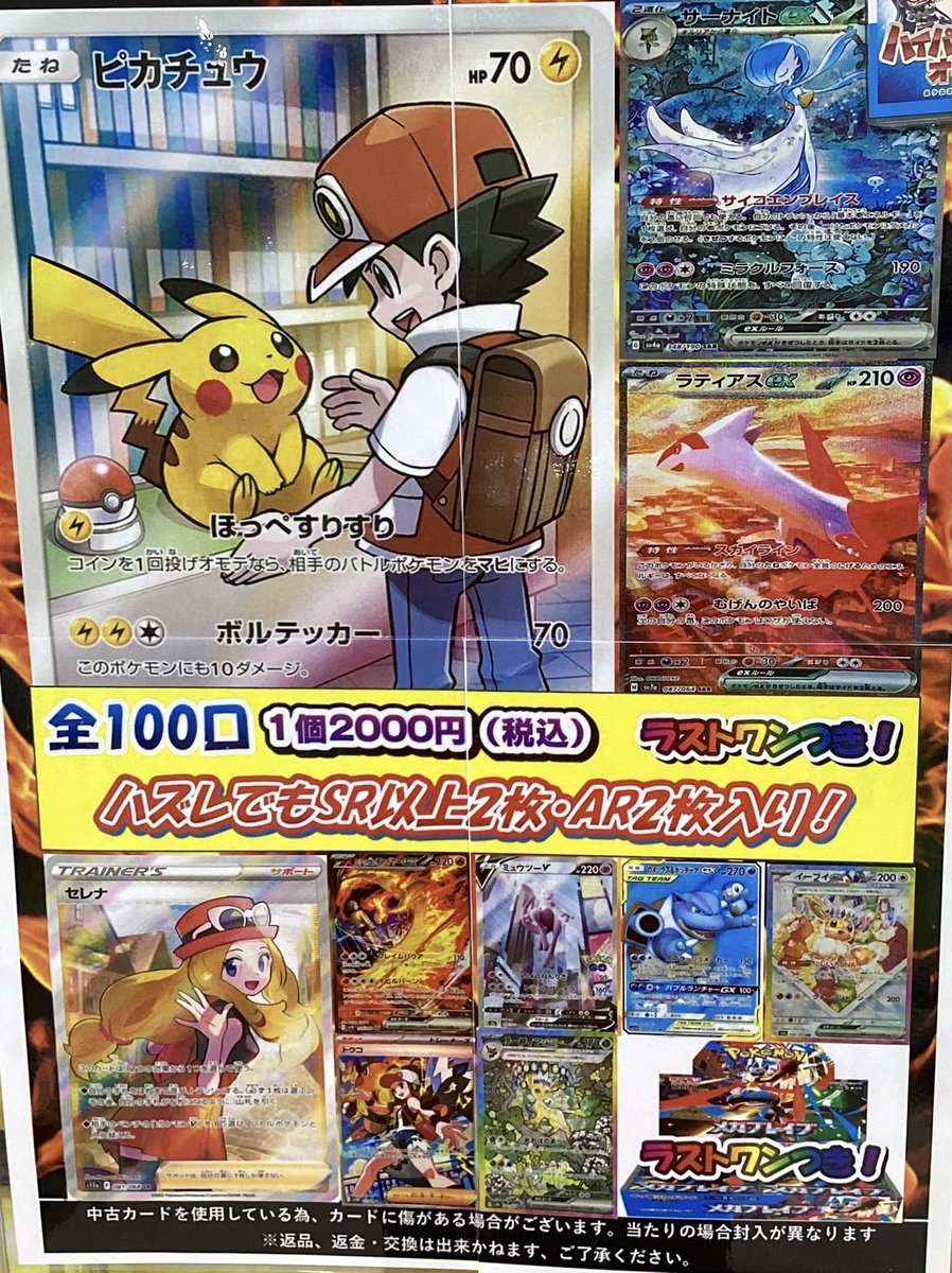 ポケカ2000円オリパ新しく展開致しました🔥 大当たりは🎯ピカチュウ CHR🎯サーナイトex SAR🎯ラティアスex SAR などなど💡 またラストワン賞もご用意しております⚡️ 是非ご来店お待ちしております♪