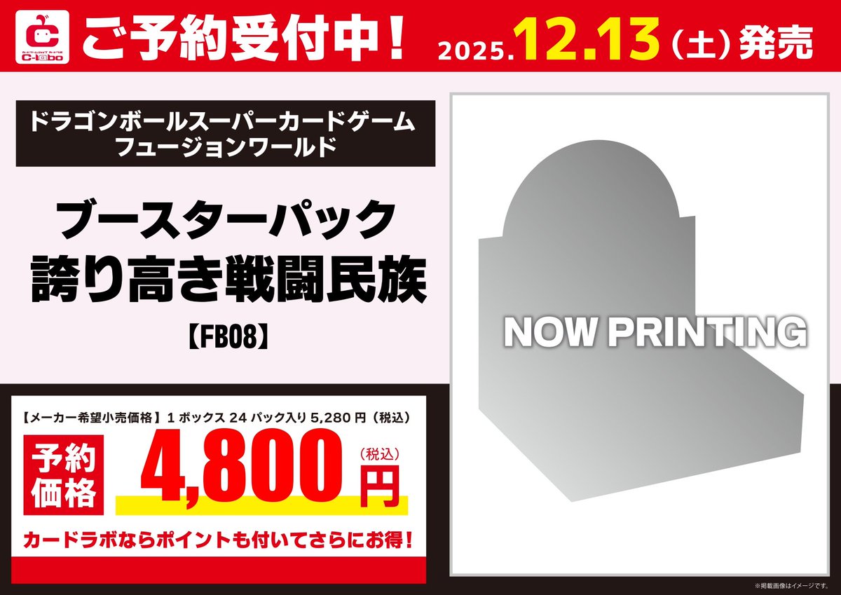 【 予約情報】 🔥12月13日(土)発売🔥 ドラゴンボールフュージョンワールド ブースターパック 『誇り高き戦闘民族』予約受付中! ご予約にはポイントカードが必須となります。 是非ご来店お待ちしております