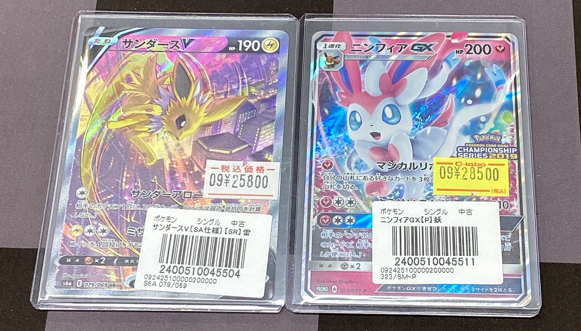 【ポケモンカード 販売情報】 💛サンダースV SR 079/069💛 🩷ニンフィアGX 323/SM-P🩷 販売中です❕ ご来店お待ちしております️⸜(*´꒳`*)⸝