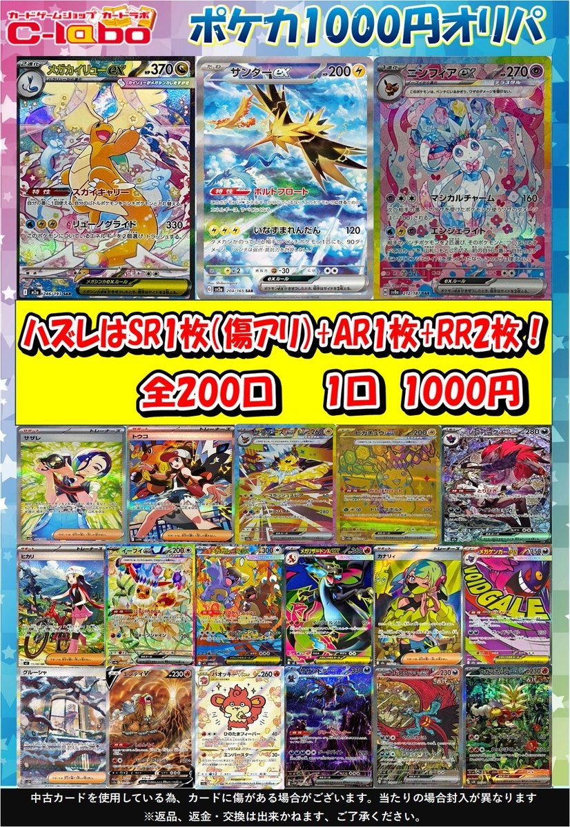【ポケモンカード 販売情報】 ポケカ1000円オリパ展開しました✨ 大当たりはメガカイリューexのSAR🪽🪽🪽 他にもPOP記載カードが当たりです😊 皆様のご来店お待ちしております🙇♂️