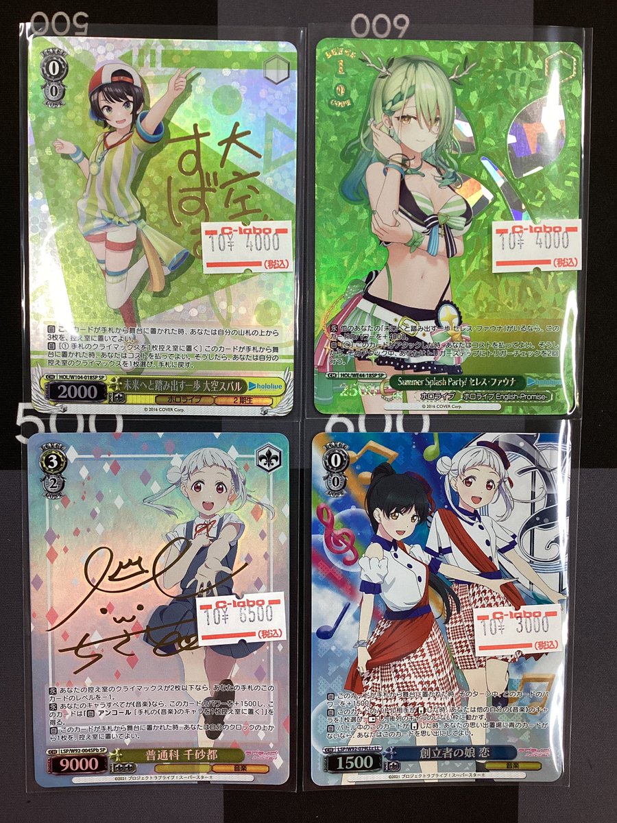 【ヴァイスシュヴァルツ販売情報】 こちらのサインカードなど入荷いたしました!! 💚未来へと踏み出す一歩 大空スバル SP 🩵普通科 千砂都 SP(b版) …など!! ショーケース内ぜひご覧くださいませ♪̊̈♪̆̈