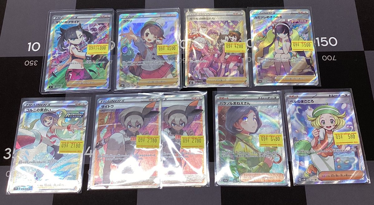 【ポケモンカード 販売情報】 画像のカードの価格調整をいたしました✨️ ・マリィのプライド ・ユウリ ・パラソルおねえさん ・ガラルの仲間たち など✨️ ご来店お待ちしております️🩵