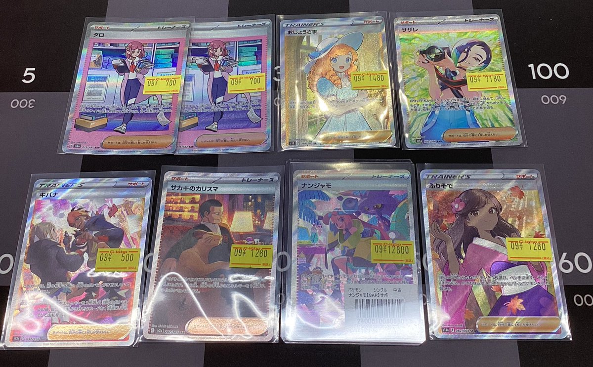 【ポケモンカード 販売情報】 画像のカードの価格調整をいたしました✨️ ・ナンジャモ ・ふりそで ・おじょうさま ・サザレ などなど️🩵 ご来店お待ちしております✨️