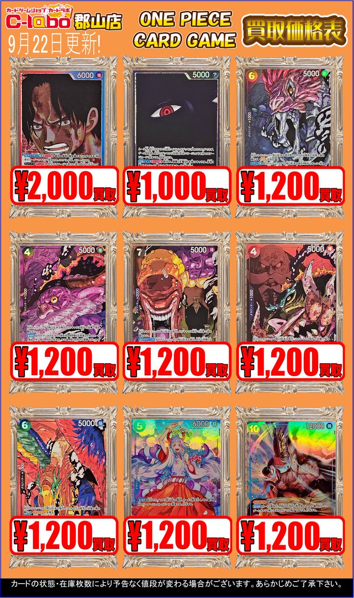 【ワンピースカード 買取情報】 ワンピ買取表更新いたしました❗️ 最新弾から汎用カードまでたくさんお持ち込みください☺