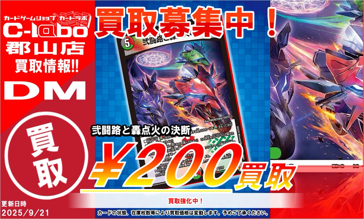 【デュエマ 買取情報】 🔥弐闘路と轟点火の決断 ¥200🔥 🔥熱き邪道 レッドゾーンZ ¥200🔥 買取大募集中です❗️❗️