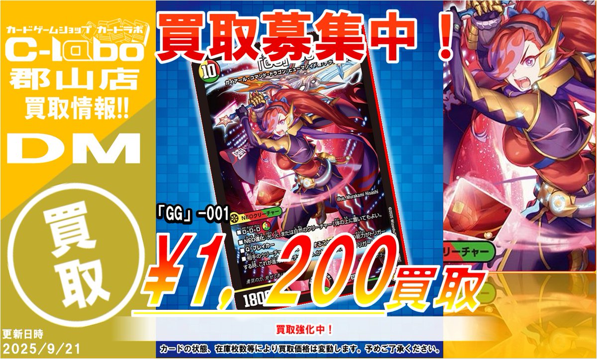 【デュエマ 買取情報】 🔥「GG」‐ 001 ¥1200🔥 🔥「GT」- 002 ¥200🔥 買取大募集中です❗️❗️