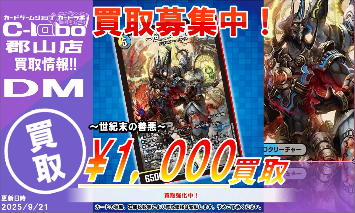 【デュエマ 買取情報】 🔥~世紀末の善悪~ ¥1000🔥 🔥~世紀末の善悪~ ¥1000🔥 🔥~世紀末の善悪~ ¥1000🔥 買取大募集中です❗️❗️