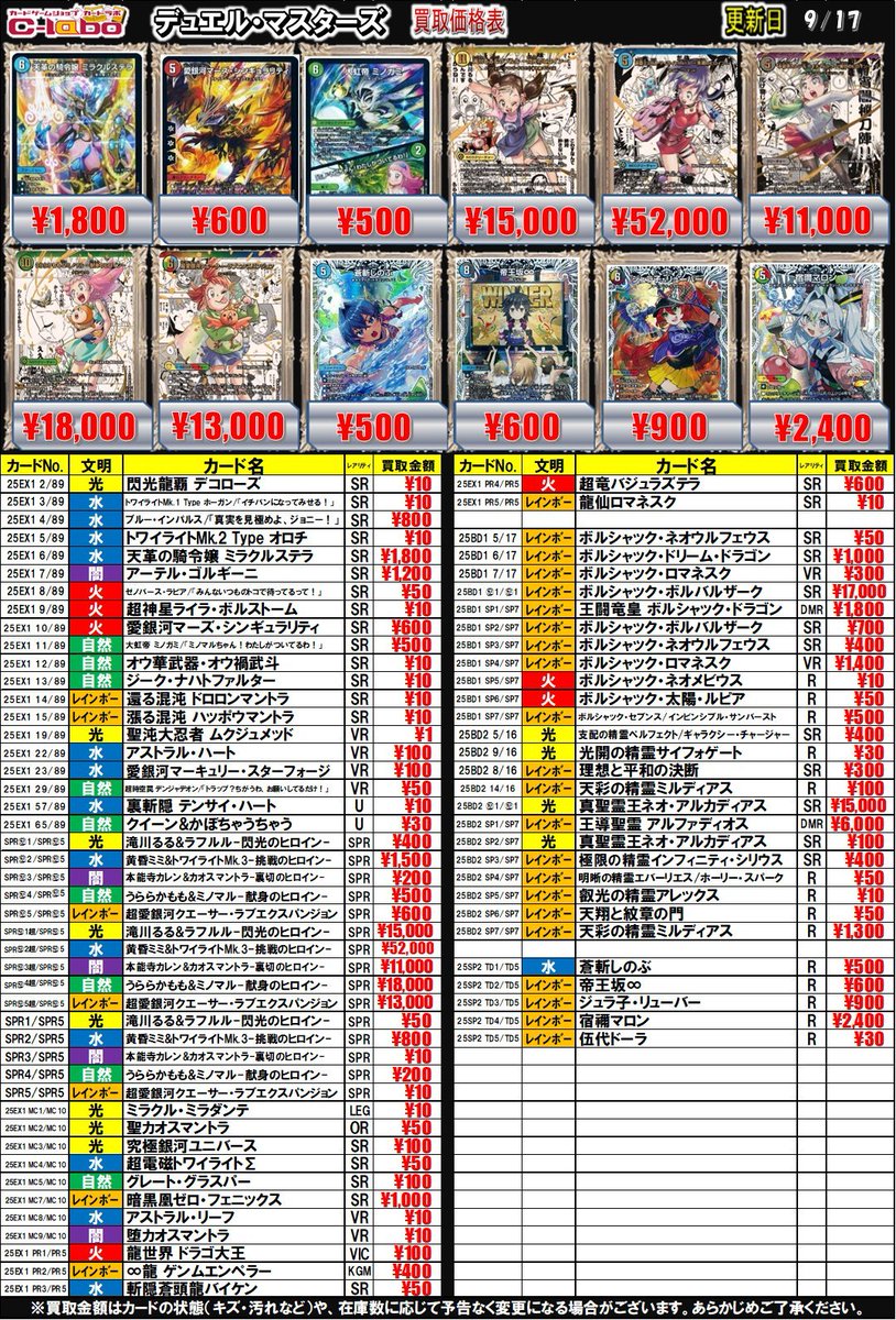【デュエマ 買取情報】 🔥蒼斬しのぶR¥500 🔥帝王坂∞R¥600 🔥ジュラ子・リューバーR¥900 🔥宿禰マロンR¥2,400 などなど!!! 最新弾シングルも募集中です 是非お持ち込みお待ちしております!
