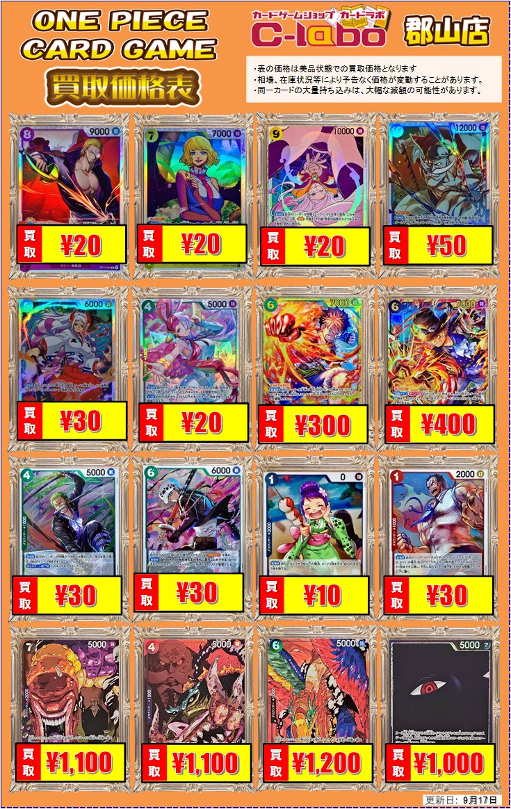 【ワンピースカード 買取情報】 ワンピ買取表更新いたしました‼️ お持ち込みお待ちしております☺