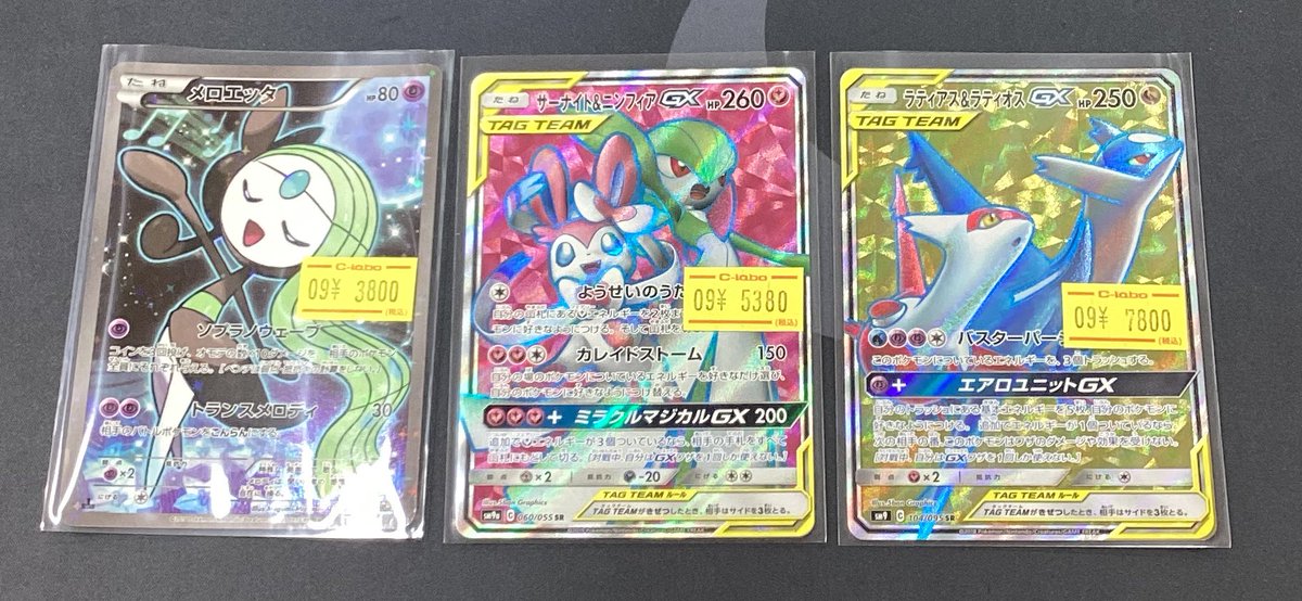 【ポケモンカード 販売情報】 ・メロエッタ ・サーナイト&ニンフィアGX ・ラティアス&ラティオスGX 入荷しました✨️ ご来店お待ちしております(*´︶`*)ノ