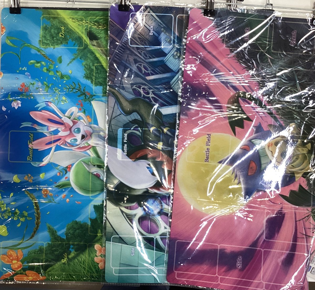 【サプライ販売情報】 こちらのポケカプレイマット、お買取させていただきました!! 💚サーナイト&ニンフィア🩷 ⚫️ダークライ&ブラッキー⚫️ 👻ゲンガー&ミミッキュ🌕 ぜひいかがでしょう✨ ご来店お待ちしております♪̊̈♪̆̈