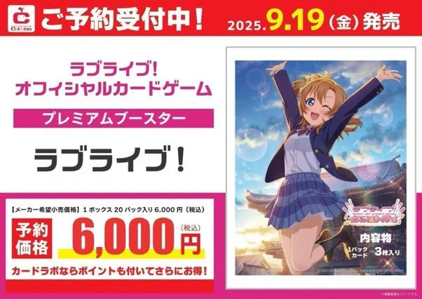 【ラブライブ!オフィシャルカードゲーム予約情報】 9/19発売 プレミアムブースター『ラブライブ!』 11/22発売予定 ブースターパック 「SAPPHIERE MOON」 12月19日(金) プレミアムブースター 「ラブライブ!虹ヶ咲学園スクールアイドル同好会」