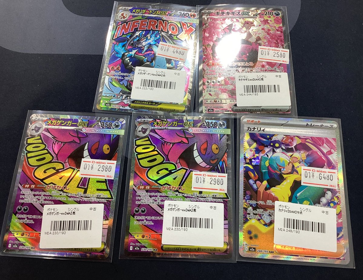 【ポケカ買取情報】 MEGAドリームexやスタートデッキの買取表更新しました! ピカチュウex【SAR】{234/193} ¥23000買取 メガゲンガーex【SAR】{240/193} ¥30000買取 メガカイリューex【SAR】{246/193} ¥17000買取 などなど 皆様のお持ち込みお待ちしております😊