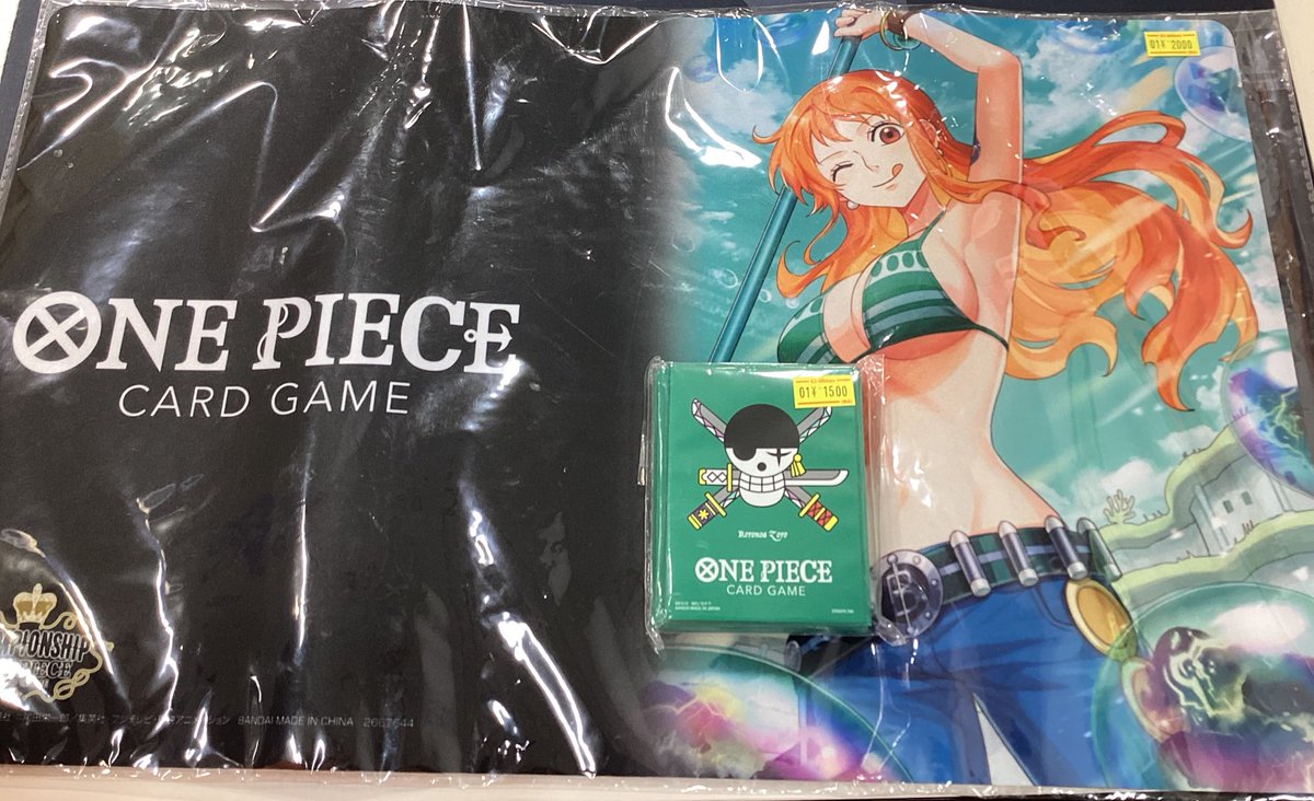 【サプライ 販売情報】 ワンピースカードゲームより こちらのプレイマットとスリーブお買取させて頂きました 是非いかがでしょうか♪ ご来店お待ちしております♪