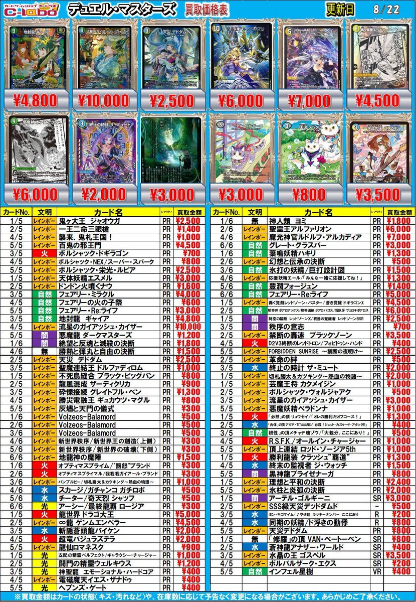 【デュエマ 買取情報】 ヒロインbest 買取表になります!! 🔥天革の騎令嬢 ミラクルステラSR¥1,600 🔥アーテル・ゴルギーニSR¥1,200 🔥愛銀河マーズ・シンギュラリティSR¥700 是非お持ち込みお待ちししております!