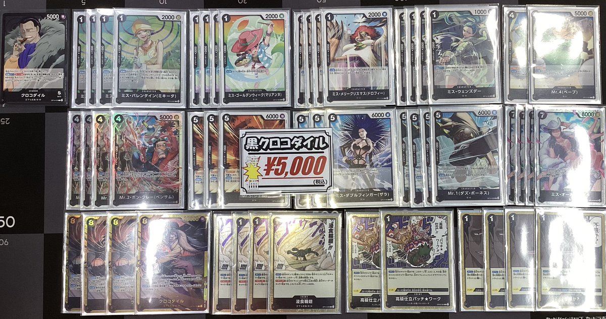 【ワンピースカード 販売情報】 黒クロコダイルデッキ販売中です🏴☠️ シングルで買うより大変お得です🉐 ご来店お待ちしております‼️